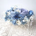 キット・ハーフキット・完成品「クリスタルチェア(ブルー)」 ブルー系のバラ・紫陽花が涼し気です。 |