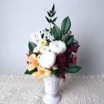 キット・ハーフキット・完成品「お供え花(輪菊ホワイト)」 水替え不要のプリザーブドフラワーのお供え花はいかがでしょうか? |