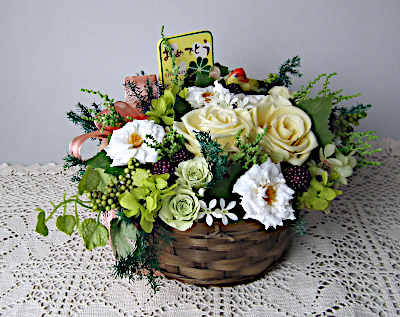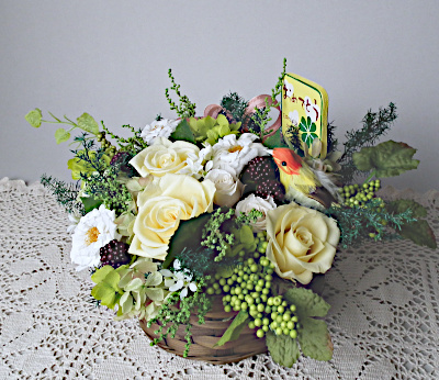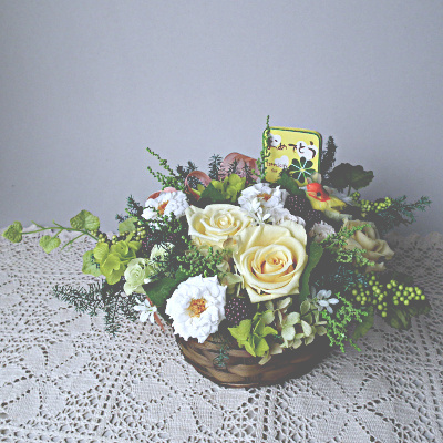 カゴアレンジ(ソフトイエロー) 【プリザーブドフラワー】